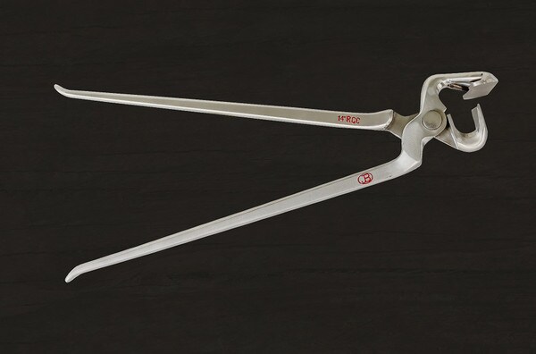 JIM BLURTON CLIP CUTTER Jim Blurton Racetrack Clip Cutter - The clip nipper allows effortless cutting of the clip recess into the hoofwall, ergonomically designed with a gauge plate to eliminate any over cuts. Available in two sizes 12" or 14". This tool can be used one-handed on difficult young horses. The clip nipper is a registered design tool hand forged from H13 steel and is hand finished.