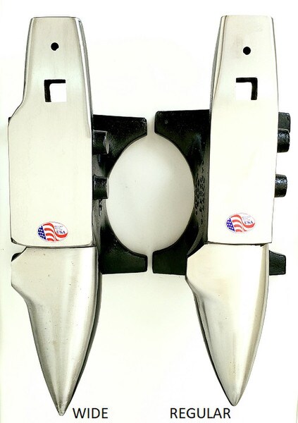 Our most popular anvils (the regular face and the wide face) are designed to make horseshoeing faster and easier for the professional or the novice. Turning in heels or making square toes can be simple and amazingly precise using the side turning cams of these specially designed anvils. The anvil heel is tapered for shaping up those small size 00 to 000 shoes. To avoid chewing up the edges of shoes while shaping, we have rounded the anvil edges at the heel. The 70 pound Wide Face Anvil features an extra wide 4 inch flat work surface that many farriers prefer, as well as all the features detailed in the Regular Face anvil.
