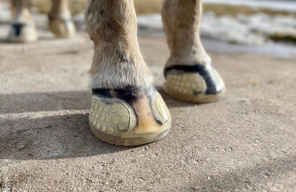 The integrated cuff has multiple glue tip application ports that make the gluing process quick and easy. Simply stand the horse in the shoe and inject adhesive through the application ports.