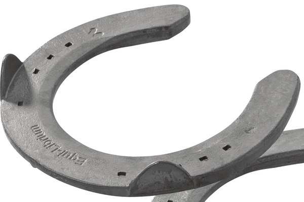 Designed at a leading Netherlands University, Olympic Champions and Endurance Performance World Wide have confirmed the success of the science driven design of the new Mustad Equilibrium sport horseshoe. Features include: Lateral branch slightly stronger. Extra wide toe area is forged with a 2-dimensional convex curve allowing fluent breakover in any direction. Center mass matches the Center of Pressure during mid-stance of the horse creating a perfectly balanced hoof. Inside edge of the ground surface's concave section is balanced to reduce weight and mud build up. concave section and crease do not run through the heels to improve support during landing. Full heels allow forging a variety of individualized alternatives to the heel area. Beveled edges, sole relief and flush clips are all standard.