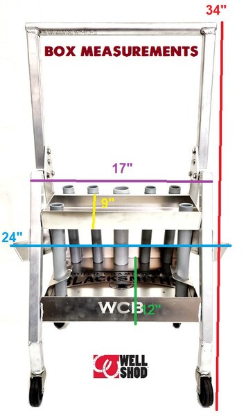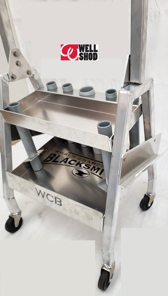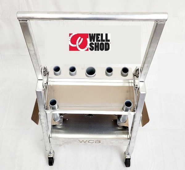 WCB ALUMINUM SHOEING BOX SKU WCBSB $429.95 Quantity discounts available QuantityPrice (0)No Reviews yet Quantity -+ Add to Cart Details WCB ALUMINUM SHOEING BOX2 Rasp holders7 Tubes to hold toolsUpper and lower trays34" Tall (Ground to top of handle)20" Wide (outside edges of rasp hold... Details Back DetailsWCB ALUMINUM SHOEING BOX2 Rasp holders7 Tubes to hold toolsUpper and lower trays34" Tall (Ground to top of handle)20" Wide (outside edges of rasp holders)17" Wide (square tubing)12" Deep bottom shelf9" Deep top shelf Ratings & ReviewsNo reviews availableBe the first to Write a Review