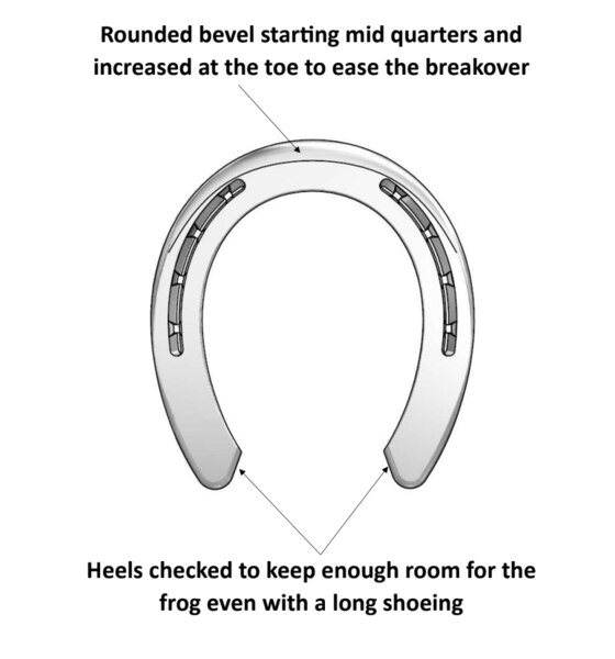 - Heels checked to keep enough room for the frog even with a long shoeing