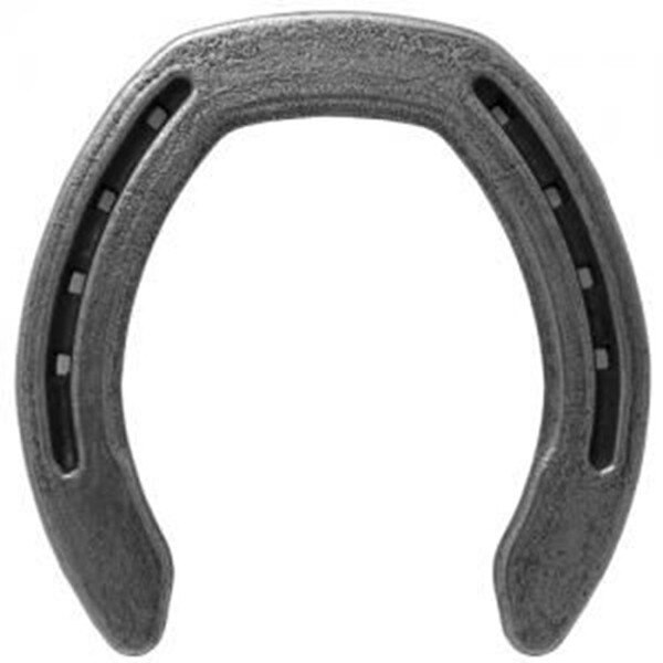 A steel shoe with the shape most like the natural shape of a horse's hoof before being distorted by ground pressure. Available in clipped and unclipped, Grand Circuit sizes 5-12. For balanced motion, ease of fit and most natural motion for the horse. The Shaper is designed to give ease of breakover and direction in flight while reducing the possibility of forging or over reaching.