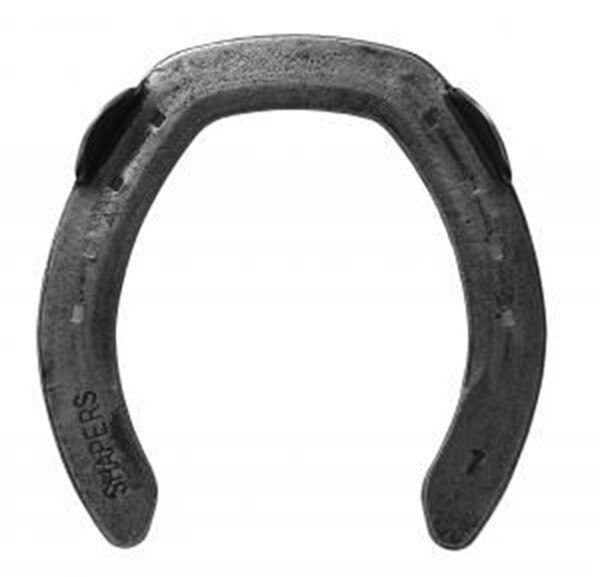 A steel shoe with the shape most like the natural shape of a horse's hoof before being distorted by ground pressure. Available in clipped and unclipped, Grand Circuit sizes 4-8. In a 7mm size for those thin walled quarter horses and thoroughbreds. For balanced motion, ease of fit and most natural motion for the horse. The Shaper is designed to give ease of breakover and direction in flight while reducing the possibility of forging or over reaching.