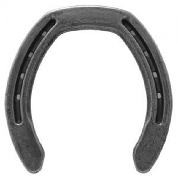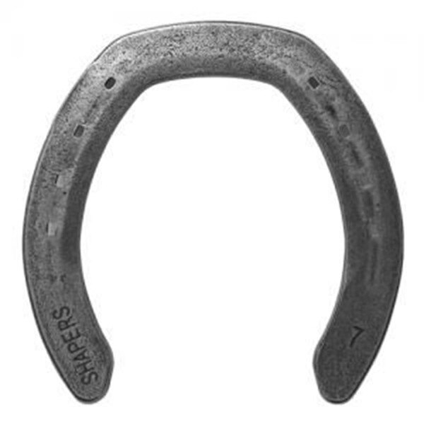 A steel shoe with the shape most like the natural shape of a horse's hoof before being distorted by ground pressure. Available in clipped and unclipped, Grand Circuit sizes 4-8. In a 7mm size for those thin walled quarter horses and thoroughbreds. For balanced motion, ease of fit and most natural motion for the horse. The Shaper is designed to give ease of breakover and direction in flight while reducing the possibility of forging or over reaching.